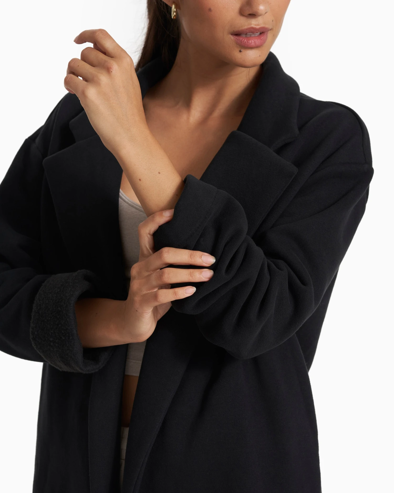 Built with a heavyweight, partly organic French terry cotton brushed-back fleece that has an ultra-soft handfeel, the cozy Restore Coat elevates any look, from the spin studio to city sidewalks.