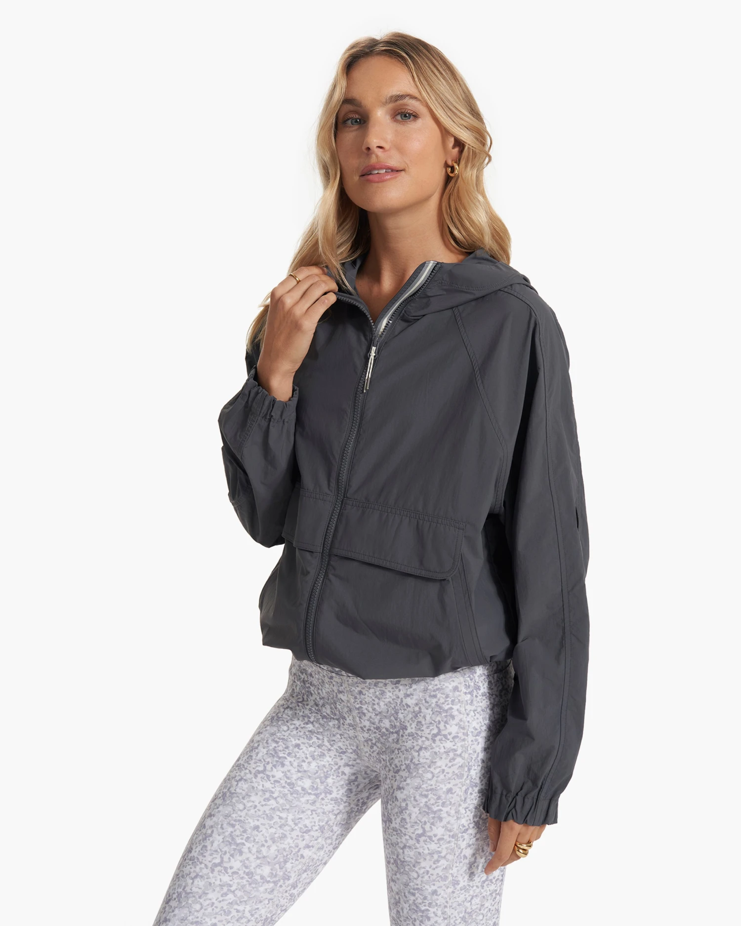 Brunch before hike or hike before happy hour, the Shores Jacket does it all. Made with a lightweight woven crinkle fabric from recycled materials, this full-zip has a weather-resistant coating and dual entry front pockets for your phone and keys.